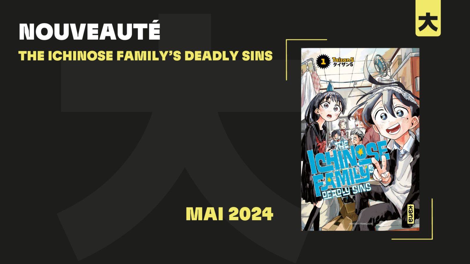 En mai 2024, notre catalogue shonen accueillera « The Ichinose Family’s Deadly Sins », une série publiée dans les pages du weekly shonen jump par le mangaka Taizan5.