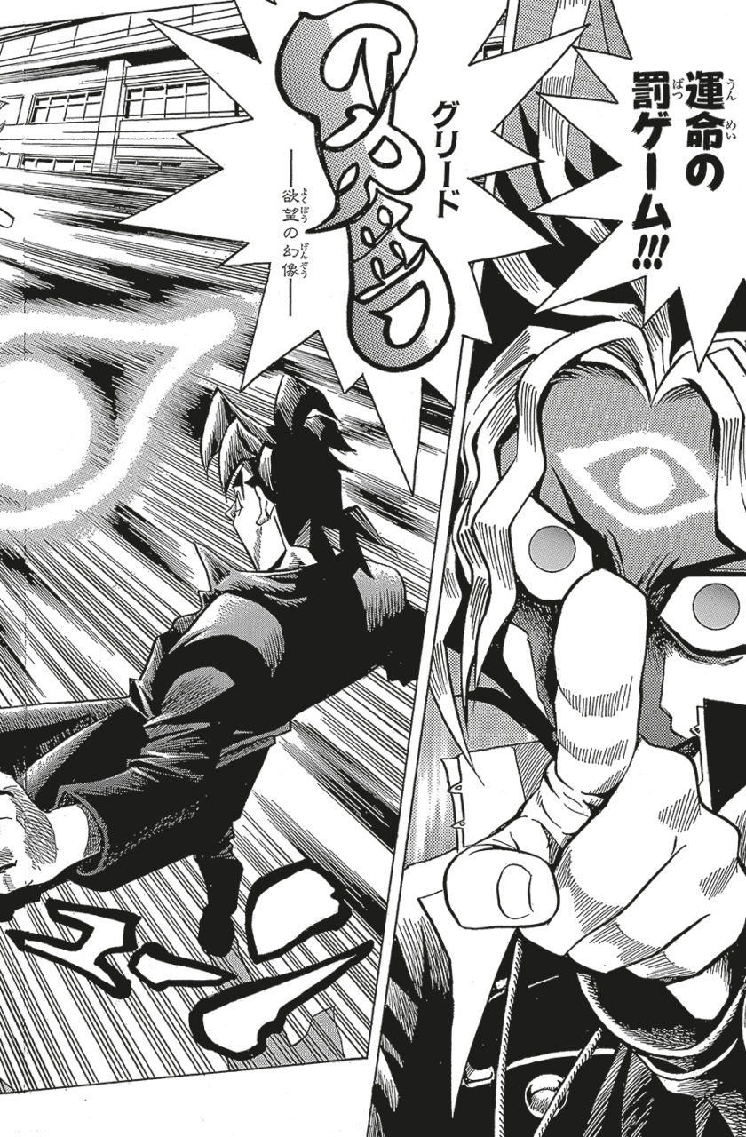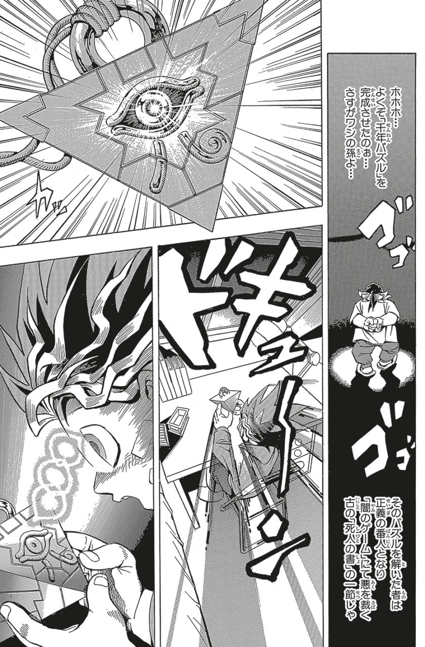 Comme un signe du destin, Yûgi parvient à reconstituer le puzzle en forme de petite pyramide. Se révèle alors en lui une seconde personnalité, celle d'un Yugi beaucoup plus sombre et qui ne tolère aucune injustice.
