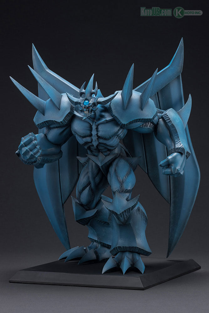 La première représente Obelisk le Tourmenteur (la carte égyptienne toute-puissante utilisée par le rival de Yugi, Seto Kaiba, après l’arc de Battle City). Avec ses 30cm de hauteur, et sa posture imposante, elle recréé fidèlement son personnage comme il apparaît dans la série, avec des ombrages et des couleurs qui lui donnent un certain cachet. Son expression féroce, ses angles tranchants ou encore ses ailes majestueuses donnent une véritable vision de chaque détail de la figurine.